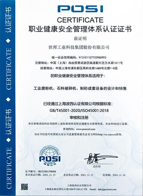 職業健康安全管理體系認證證書