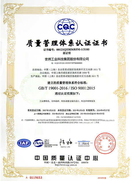 質量管理體系認證證書