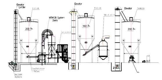 磨粉系統(tǒng)采用兩臺MTW138,細(xì)度100mesh,單臺產(chǎn)量13t/h,一臺正常生產(chǎn),一臺備用。 破碎機(jī)將大尺寸的天然石膏礦石破碎成小于30mm的小塊顆粒,經(jīng)過儲存以及電磁震動給料機(jī)控制進(jìn)料量,輸送至磨機(jī)進(jìn)行粉磨,經(jīng)選粉機(jī)篩選至所需細(xì)度。粉磨合格的生粉輸送至沸騰爐進(jìn)行煅燒,煅燒后的合格石膏粉送入孰料倉或制品車間使用。 A 技術(shù)先進(jìn),工藝成熟穩(wěn)定,在國內(nèi)外石膏板生產(chǎn)線廣泛采用; B 選用的設(shè)備質(zhì)量可靠,有較強(qiáng)擴(kuò)展和超產(chǎn)能力,維修量低,維護(hù)方便; C 密封性好,高效除塵,無粉塵污染; D 設(shè)備緊湊,占地少; E 全集成自動化控制系統(tǒng),減少了現(xiàn)場工作人員和勞動強(qiáng)度。 伊拉克政府項目多和歐美公司合作,與世邦建立業(yè)務(wù)聯(lián)系,也是前列次嘗試中國設(shè)備。成品石膏粉的細(xì)度、初凝時間、終凝時間、抗折強(qiáng)度等均滿足國家標(biāo)準(zhǔn),在本國石膏建材領(lǐng)域反饋良好。項目背景