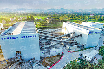 該項目生產工藝采用“三級破碎、兩級水洗篩分、一級整形制砂”濕法生產工藝。考慮礦坑深80米,直徑超800米的老礦環境,為了節能減排,助力“雙碳”目標實現,項目工藝設計上,將粗碎和中碎放置在礦坑內部,原料通過卡車近距離轉運即可輸送到料倉,極大降低了碳排放。粗、中碎后的物料,則通過長距離皮帶機輸送到平地上的緩沖庫,之后由皮帶機連續、均勻輸送至篩分車間進行篩分,篩分后物料,大于25mm的石料輸送至細碎、制砂整形車間,由高效節能的細碎圓錐破碎機進行細碎,由專業的立軸沖擊式制砂機進行整形、制砂。