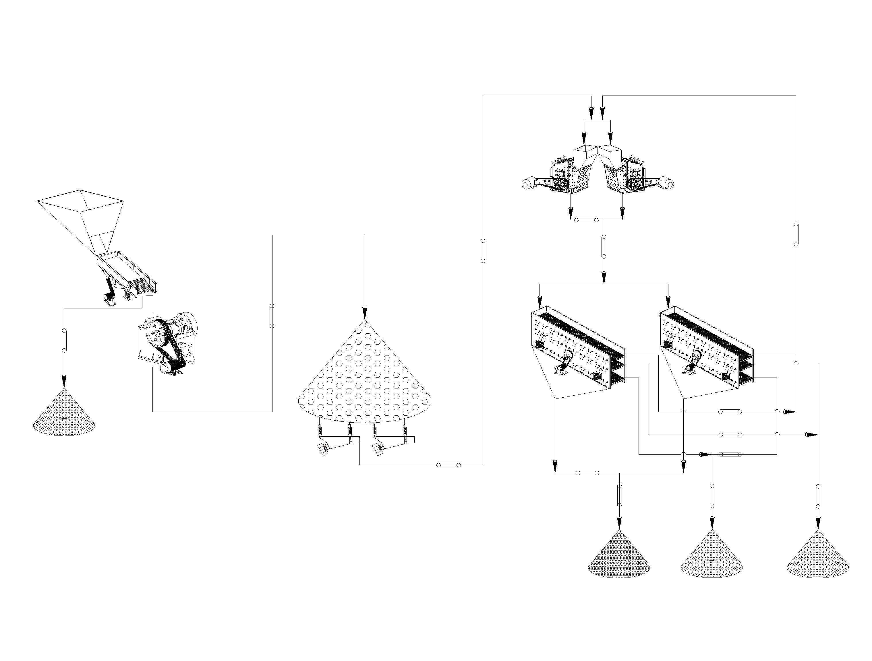 主要設(shè)備:PE1000*1200顎破一臺、PFW1315III反擊破兩臺等。