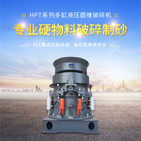 HPT系列多缸液壓圓錐破碎機工作時,電機通過皮帶輪和三角帶帶動設(shè)備傳動軸轉(zhuǎn)動,傳動軸通過大小錐齒輪帶動偏心套繞主軸轉(zhuǎn)動,偏心套帶動動錐做旋擺運動,使動錐和定錐時而靠近、時而遠(yuǎn)離軋臼壁,物料在軋臼壁和破碎壁形成的破碎腔內(nèi)不斷受到擠壓、沖擊而破碎,破碎的物料從下部排出。