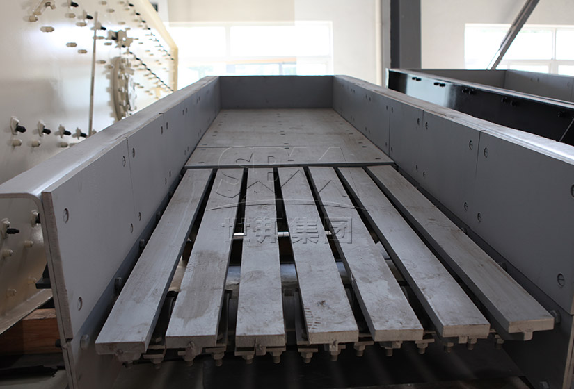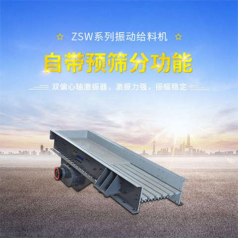 在生產(chǎn)線中,ZSW振動給料機可用于開采的礦石、巖石、河卵石和建筑垃圾等塊狀和顆粒狀物料的給料作業(yè);料槽配置單層篦條,可以對物料進行簡單預篩分,能有效去除原料中的細料和雜質(zhì)。