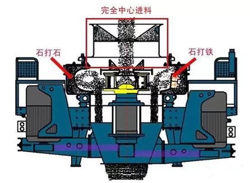 VSI制砂機除了有兩種進料方式:完全中心進料和中心進料伴隨瀑落進料,還有兩種破碎方式:“石打石”和“石打鐵”。“石打石”適用于整形,“石打鐵”適用于制砂。