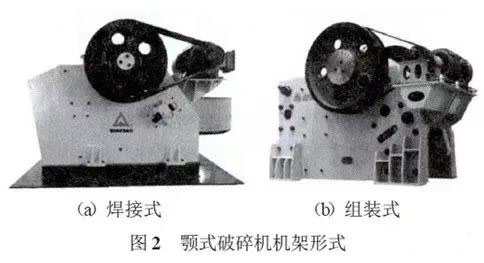 顎式破碎機機架形式如圖2所示,目前機架形式分為焊接式和組裝式兩種結構。