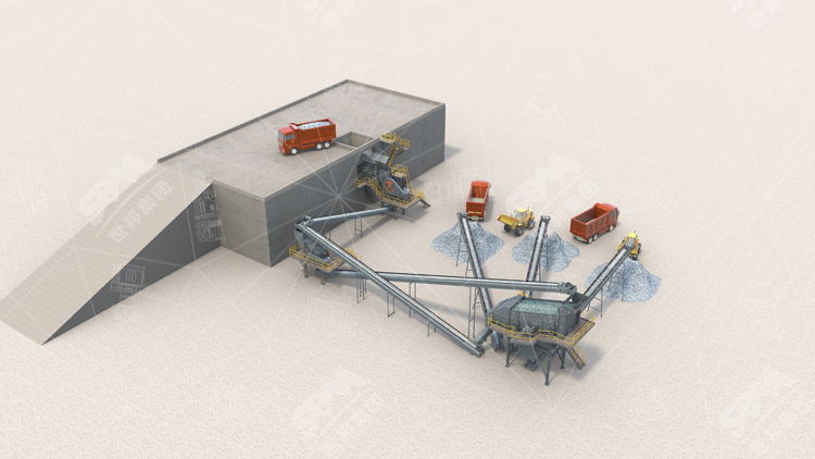 石灰石大塊物料經料倉由振動給料機均勻喂料,輸送到顎式破碎機進行粗碎,粗碎后的物料經振動篩篩分后,由皮帶輸送機輸送至反擊式破碎機。