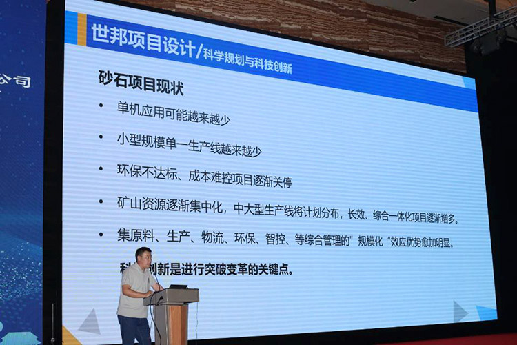 此次會議還邀請了業(yè)內(nèi)知名專家學(xué)者、企業(yè)精英作專題報告。20日下午,作為特邀嘉賓,世邦集團技術(shù)經(jīng)理張培林先生在會上作了《目前砂石行業(yè)形勢下利用科技創(chuàng)新和科學(xué)規(guī)劃的技術(shù)應(yīng)用分享》主題報告。