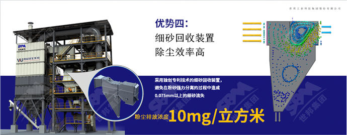 采用技術的細砂回收裝置,避免在粉砂強力分離的過程中造成0.075mm以上的細砂流失,保障經濟效益。