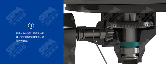 采用錐齒輪整體傳動的優化設計,結構更加緊湊,安裝調節更方便快捷,效率大大增加。