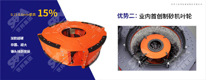 配置制砂機葉輪,特制高硬度“石打石”腔型結構,錘頭傾斜安裝,破碎效率比傳統機型提高15%左右。