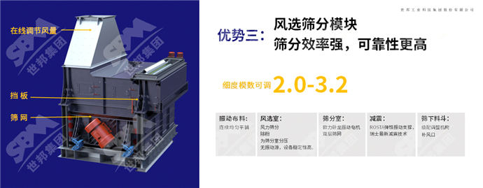根據不同客戶需求,在無需更換篩網和硬件的情況下,通過調節下層篩上料的返料控制和風量,可輕松實現細度模數從2.3-3.2、含粉量從5-13%之間的調節。