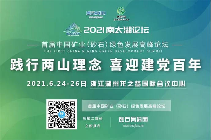 “南太湖論壇·首屆中國礦業(砂石)綠色發展高峰論壇”將于6月24日在湖州龍之夢國際會議中心舉行,展會為期三天。