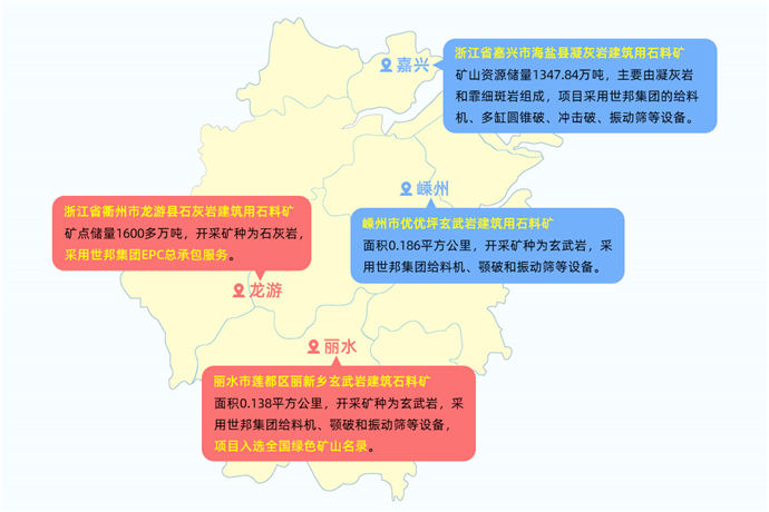 海新礦業(yè)采用世邦的給料機、多缸圓錐破、沖擊破、篩分等設(shè)備,項目投產(chǎn)后將為浙北地區(qū)交通、建筑等工程提供優(yōu)質(zhì)的砂石材料保障。