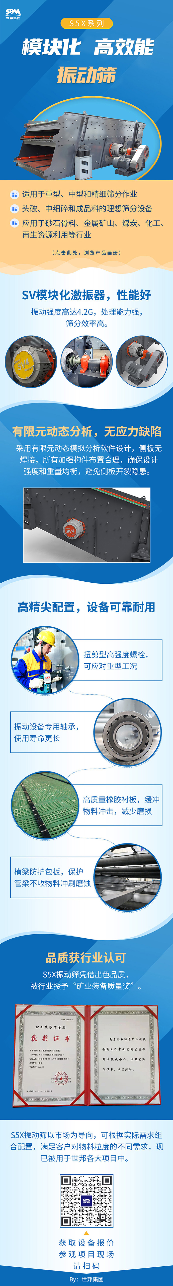 S5X振動篩憑借出色品質,被行業授予“礦業裝備質量獎”。