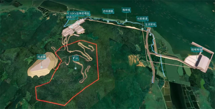 中電建陽西項目是陽江地區(qū)頭等綠色礦山建材項目,是集開采、運輸、加工和銷售一體的綠色建材基地,也是“建設(shè)、生產(chǎn)、運營、修復(fù)”全產(chǎn)業(yè)鏈一體化項目。項目建設(shè)規(guī)模大,資源儲量約2億噸,建設(shè)總投資約52億元,主要由礦山開采、砂石工廠、長距離運輸廊道三大部分組成,配套重量級港口碼頭。此外,項目地理位置優(yōu)越,地處大灣區(qū)、北部灣城市群和海南自貿(mào)港三大國家戰(zhàn)略的交匯地帶,西可到茂名、湛江,東可達江門、珠海,項目投產(chǎn)后或可通過海運輻射粵港澳大灣區(qū)主要中心城市及東南亞市場。