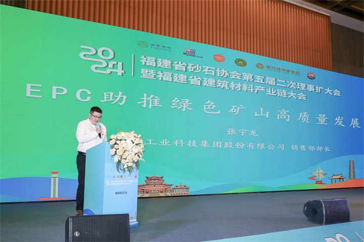 在這場匯聚行業精英、共謀高質量發展的盛會上,世邦黎明以“EPC助推綠色礦山高質量發展”為主題做了經驗分享。在主題報告中,世邦黎明銷售部部長張宇龍從分析當前所處的行業大環境著手,向與會嘉賓詳細介紹了世邦黎明EPC砂石生產工藝全流程設計理念并分享了世邦黎明多年來在福建地區及全國其他各地成功交付的大型EPC項目案例。張宇龍強調,世邦黎明長期致力于綠色礦山技術的研發與應用,在EPC模式下的創新實踐,不僅優化了礦山項目的全周期管理,更實現了設計理念到實踐應用的全方位突破,讓客戶真正實現投資低、成本低、品質優的多重回報。