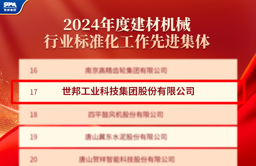 近日,經(jīng)全國(guó)建材裝備標(biāo)準(zhǔn)化技術(shù)委員會(huì)及國(guó)家建筑材料工業(yè)機(jī)械標(biāo)準(zhǔn)化技術(shù)委員會(huì)嚴(yán)格評(píng)審,世邦集團(tuán)憑借在行業(yè)標(biāo)準(zhǔn)體系建設(shè)中的突出貢獻(xiàn),被授予“2024年度建材機(jī)械行業(yè)標(biāo)準(zhǔn)化工作先進(jìn)集體”稱號(hào)。這一榮譽(yù)不僅是對(duì)世邦集團(tuán)長(zhǎng)期致力于行業(yè)標(biāo)準(zhǔn)化建設(shè)的高度認(rèn)可,更彰顯了企業(yè)在推動(dòng)行業(yè)規(guī)范化發(fā)展中的示范作用。