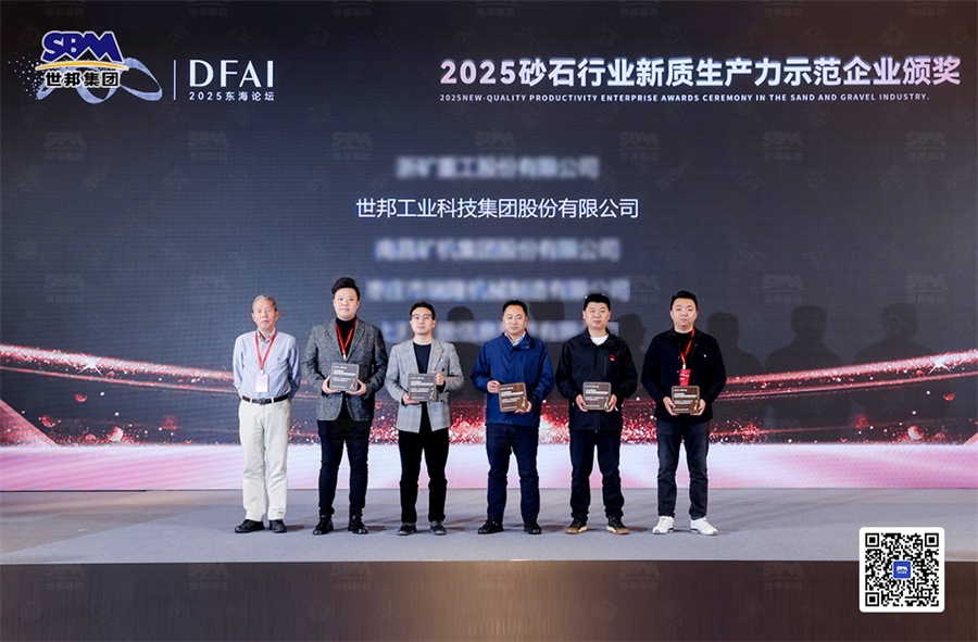 在這場思想碰撞、技術交融的行業盛宴中,世邦集團以贊助單位的身份深度參與,并在裝備展示區設立展位,以創新技術實力與綜合服務能力成為全場焦點,更在同期舉辦的 “2025年砂石行業新質生產力示范企業表彰大會” 上,喜獲獎項!