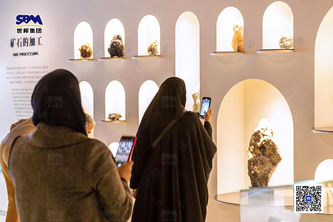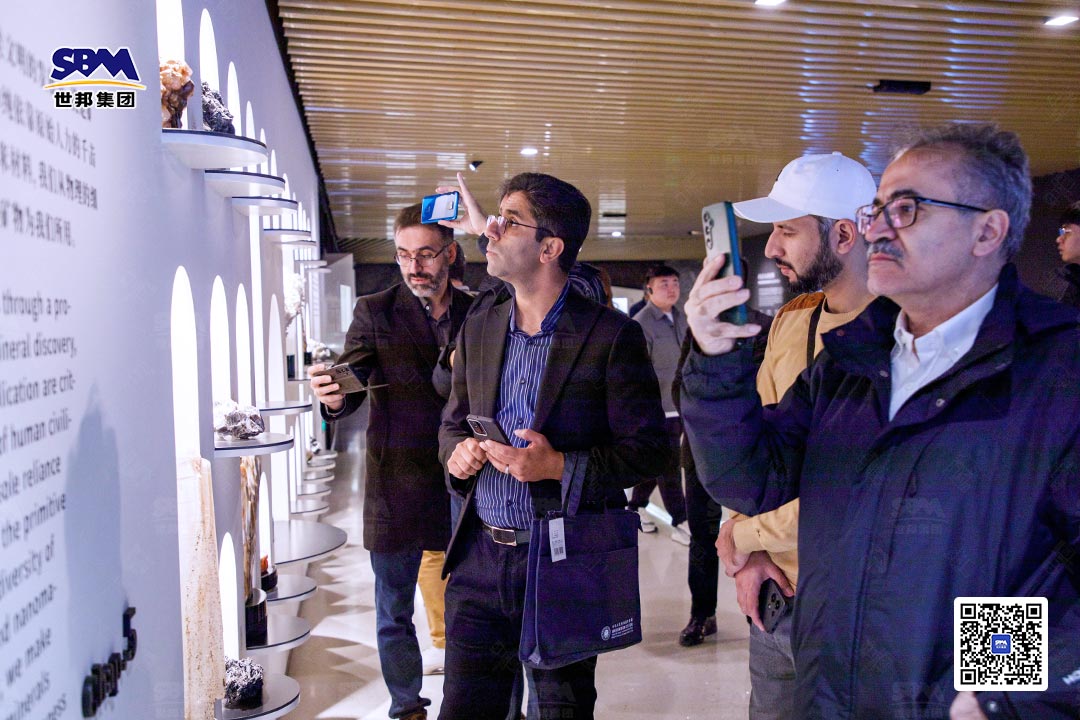 隨后,代表團前往世邦集團礦石博物館,開啟了一場探尋"天地造化之石"的獨特之旅。館內收藏的各類礦石標本、完整的礦山開發歷史資料,讓中東代表團直觀感受了礦產資源的多樣性與產業發展脈絡,進一步加深了對中國破碎篩分行業價值的認知與理解。