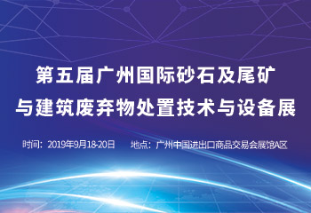 展會信息:名稱:第五屆廣州國際砂石及尾礦與建筑廢棄物處置技術與設備展展位號:(6.1館)M006、M007時間:2019年9月18日-20日地址:中國進出口商品交易會展館A區(廣州市閱江中路380號)參