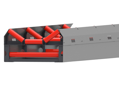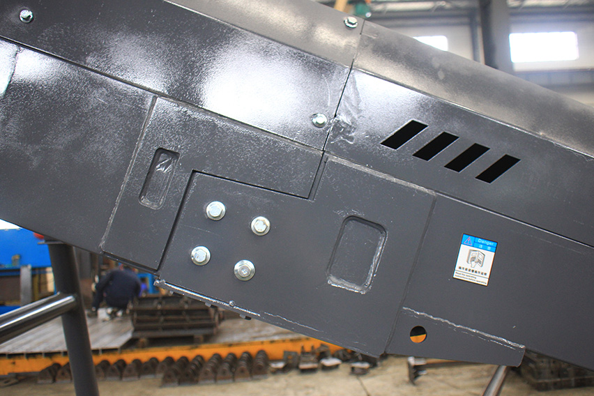 傳統(tǒng)皮帶機(jī)一般使用槽鋼和托輥架搭配使用,機(jī)架相對(duì)單薄。而B(niǎo)6X皮帶機(jī)在這一點(diǎn)上做了變革——使用C型鋼代替了槽鋼并配備側(cè)護(hù)板,基于這個(gè)改進(jìn),B6X系列皮帶機(jī)機(jī)架總體鋼性得以大大提升。