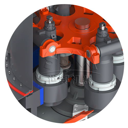 蝸殼彈性減震結(jié)構(gòu),有效阻斷主機(jī)振動損傷。蝸殼與機(jī)座之間采用特殊彈性結(jié)構(gòu),結(jié)合橡膠減震墊設(shè)置,直接避免因底座振動對選粉機(jī)運轉(zhuǎn)穩(wěn)定性的影響,杜絕因底座振動造成蝸殼和中機(jī)體震裂的問題。