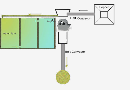該設備兼有清洗、脫水、分級三種功能;工作時,在葉輪的帶動下,砂石互相研磨,除去覆蓋砂石表面的雜質,同時破壞包覆砂粒的水汽層,并在強大水流完成清洗除雜功能。