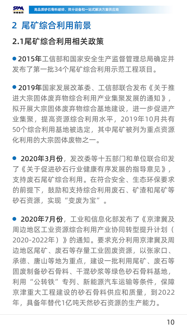 隨著我國環保力度的加大,如何妥善處理礦產資源開發過程產生的尾礦,實現資源綜合利用成為在礦山企業面前的一個重要問題。事實上,根據尾礦礦物組成、巖石性質、粒度特征因素,科學合理的設計制砂工藝流程,可實現85%的尾礦利用率。