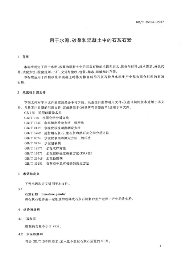 本標(biāo)準(zhǔn)規(guī)定了用于水泥、砂漿和混凝土中的石灰石粉的術(shù)語(yǔ)和定義、組分與材料、技術(shù)要求、分級(jí)代號(hào)、試驗(yàn)方法、檢驗(yàn)規(guī)則、出廠、交貨與驗(yàn)收、包裝、標(biāo)志、運(yùn)輸和貯存等。
