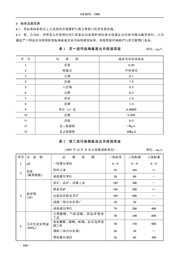 本標準按照污水排放去向,分年限規定了69種水污染物理想允許排放濃度及部分行業理想允許排水量。本標準適用于現有單位水污染物的排放管理,以及建設項目的環境影響評價、建設項目環境保護設施設計、竣工驗收及其投產后的排放管理。